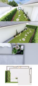 เป็นอีกไอเดียที่ใช้กันบ่อยมาก ไอเดียคือสลับจากการปูพื้นด้วยแผ่นกระเบื้องใหญ่ ๆ มาเป็นทางเดินขนาดเล็กในสวน โดยทั่วไปจะนิยมใช้เป็นแผ่นหิน เพราะตัดกับสนามหญ้าสีเขียวดูเป็นธรรมชาติ แถมประหยัดพื้นที่การใช้งาน