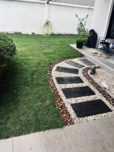 5. ปูพื้นทางเดินหินบนสนามหญ้า